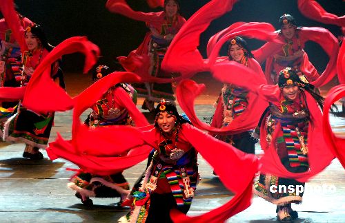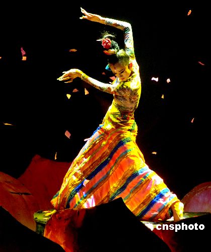 11月29日晚,由著名舞蹈家楊麗萍擔任總編導并領銜主演的大型藏族原生態(tài)歌舞樂《藏謎》在福州上演,這是首部全景式展現(xiàn)藏族原生態(tài)文化的大型歌舞樂演出,讓全場的觀眾充分領略藏族文化的博大精深。中新社發(fā) 劉可耕 攝