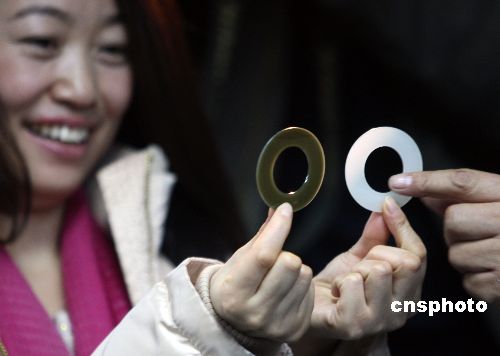 一月二日,北京奧組委和青海省政府正式舉行昆侖玉捐贈儀式。昆侖玉將作為2008北京奧運會獎牌用玉。青海昆侖玉主要成分由“投山石”和“陽起石”組成的纖維狀微晶結(jié)合體,有“白玉”、“青玉”、“青白玉”、“黃玉”、“墨玉”等,豐富的色澤便于區(qū)分金、銀、銅獎牌的等級,是國際珠寶界目前認定的優(yōu)質(zhì)級別寶玉石種類。中新社發(fā) 任海霞 攝
