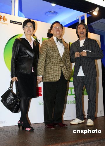 一月二十三日晚,周星馳身兼導(dǎo)演、編劇、演員,歷時三年打造的電影《長江七號》在香港舉行全球首映禮,百位政界、商界、演藝界嘉賓出席觀看。特首曾蔭權(quán)夫婦也出席首映禮,支持香港創(chuàng)意工業(yè)。中新社發(fā) 王麗南 攝