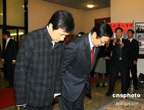 成龍?jiān)谥袊v英使館吊唁四川地震遇難者