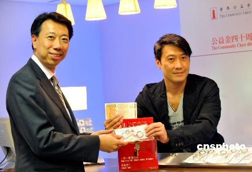 八月二十七日,為慶祝香港公益金成立四十周年,公益金在香港中環(huán)區(qū)一間渣打銀行分行舉行籌款項目“珍藏版迷你八達(dá)通卡”開展儀式,并公布相關(guān)事宜。歌星黎明更充當(dāng)“售貨員”,并以公益金董事身份出席宣傳,呼吁市民支持活動。中新社發(fā) 鄧慶樂 攝