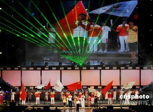9月10日,為期4天的第十七屆中國金雞百花電影節(jié)在遼寧大連開幕。活動期間,電影節(jié)開幕式及文藝晚會、明星走紅地毯儀式、第29屆大眾電影百花獎頒獎典禮這三大主體活動分別在大連市人民體育場、星海灣城雕廣場和世博廣場舉行。中新社發(fā) 劉德斌 攝