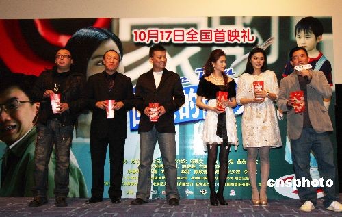 圖為主創(chuàng)人員合影。由范冰冰、杜汶澤領銜主演的,講述一位在職場取得成就的漂亮女主持人在一場大型直播秀中遇到的種種突發(fā)狀況,最終失去寶貴親情的主旋律實驗電影《回家的路》,10月17日在北京首都影城舉行首映式,導演方剛亮、主演范冰冰、杜汶澤等主創(chuàng)到場出席。這部帶有實驗性質的電影采用現(xiàn)場直播秀的獨特形式,從側面反映現(xiàn)代女性在光鮮亮麗的職業(yè)外表之下隱藏的家庭與事業(yè)的艱難抉擇。中新社發(fā) 王昊 攝