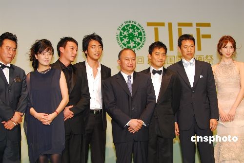 10月18日傍晚,第21屆東京國際電影節(jié)開幕。以“環(huán)保”為主題的本屆電影節(jié)別出心裁地將星光大道的地毯由紅色改為綠色。上個(gè)月剛剛當(dāng)選日本首相的麻生太郎與開幕影片《赤壁》劇組成員同走綠地毯,成為第一個(gè)光臨東京國際電影節(jié)現(xiàn)場的日本總理大臣。圖為《赤壁》主創(chuàng)人員在電影節(jié)開幕式上亮相。中新社發(fā) 侯宇 攝