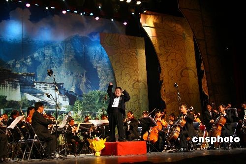 11月13日晚,著名智障音樂(lè)指揮家舟舟在拉薩民族文化藝術(shù)宮憑著對(duì)音樂(lè)的天賦感悟和高超的指揮藝術(shù)將觀(guān)眾帶進(jìn)神圣的音樂(lè)殿堂。身著黑色燕尾服的舟舟激情四溢的揮舞著指揮棒,劃出優(yōu)美的弧線(xiàn)、打著鮮明的拍點(diǎn),再輔以豐富的表情,指揮西藏愛(ài)樂(lè)樂(lè)團(tuán)的樂(lè)手們將《卡門(mén)序曲》、《拉德斯基進(jìn)行曲》、《匈牙利舞曲》等世界經(jīng)典名曲演繹出令人心醉神迷的優(yōu)美旋律。中新社發(fā) 那勇順 攝