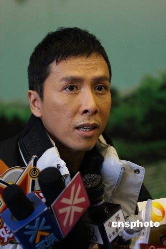 11月27日,甄子丹到北京大學(xué)百年講堂,為功夫賀歲片《葉問》宣傳造勢。當(dāng)天正趕上甄子丹的生日,北大百名學(xué)子為甄子丹合唱生日快樂歌,場面十分溫馨。甄子丹被學(xué)生們的熱情感動,非常開心,更擺開架勢教北大學(xué)子打起了詠春拳。甄子丹稱:“《葉問》不只是功夫片,它在展示了詠春拳魅力的同時,更發(fā)揚(yáng)了一種精神,我相信那是中國人的精神。” 中新社發(fā) 王利 攝