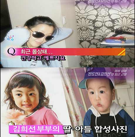 預(yù)產(chǎn)期在09年1月的金喜善近期被頻頻曝光,不光有好友在博客里面公開(kāi)了她的最新照片,婆婆更對(duì)媒體表示將有個(gè)小孫女。日前,韓國(guó)網(wǎng)絡(luò)上還出現(xiàn)了號(hào)稱(chēng)“金喜善未來(lái)寶寶模樣”的相關(guān)合成照。