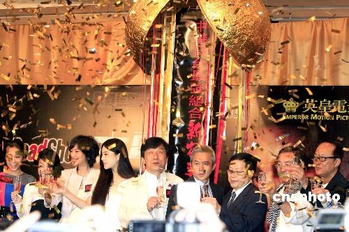 二月二十五日,耗資兩億港元的電影《新宿事件》在香港舉行宣傳活動,導(dǎo)演爾冬阩及成龍、徐靜蕾、范冰冰、吳彥祖等主要演員出席揭幕儀式。中新社發(fā) 張勤 攝