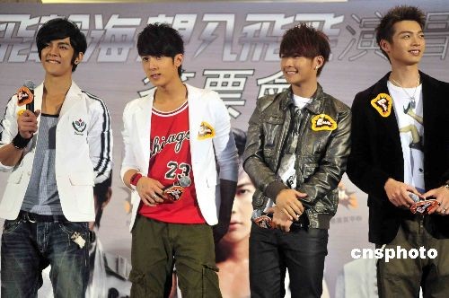 二月二十六日,臺灣組合“飛輪!痹谙愀垡簧虉雠e行簽名活動,為其即將舉行的演唱會造勢。中新社發(fā) 譚達明 攝