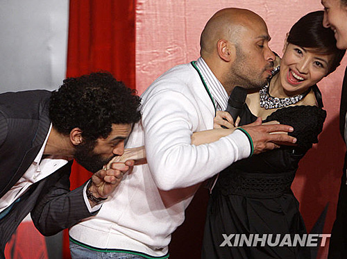4月9日,法國(guó)電影《孤獨(dú)二兄弟》的導(dǎo)演兼主演、法國(guó)家喻戶(hù)曉的笑星組合朗茲·貝迪亞(左)和埃里克·朱多爾(中)在接受采訪時(shí)逗樂(lè)。當(dāng)日,由中國(guó)國(guó)家廣播電影電視總局、法國(guó)駐華大使館等單位共同主辦的“2009中法文化交流之春暨第六屆法國(guó)電影展映活動(dòng)”在北京開(kāi)幕,該活動(dòng)將向中國(guó)觀眾展現(xiàn)當(dāng)代法國(guó)藝術(shù)舞臺(tái)的活力和創(chuàng)造力,為中法兩國(guó)藝術(shù)家提供交流的機(jī)會(huì)。邢廣利 攝