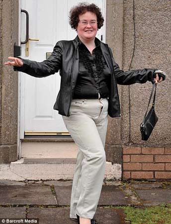 6日,經(jīng)過一番打扮,蘇珊走出家門。面帶招牌式的笑容,蘇珊在自家門前大擺POSE,讓媒體記者拍個夠。開心的蘇珊并沒有注意到當時的形象并不得體——她忘記將褲子的拉鏈拉上。由于褲子太緊而拉鏈又沒拉,里面的衣服大有往外擠的陣勢。老式黑色襯衣緊緊地繃在她身上,更凸顯了她的贅肉。