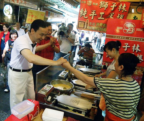 喜歡品嘗小吃的朱立倫努力幫老街拼經(jīng)濟(jì),又到“阿玉麻姥”買了700元的伴手禮,說要在下午的國民黨中山會報與大家分享,后來到廣安宮與鴨肉店老板李光雄等人上香祈福。朱立倫說,他祈求的是“平安”。