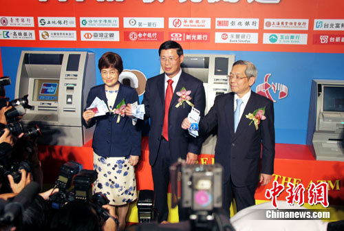 中新網臺北6月30日電(記者 黃少華)6月30日,中國銀聯(lián)、臺灣財金公司、臺灣銀行公會舉行記者會,宣布銀聯(lián)卡在臺ATM提領新臺幣、預借現(xiàn)金及余額查詢服務正式開通。
