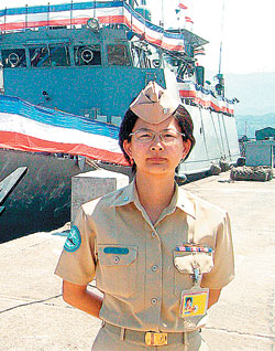 中新網(wǎng)7月12日電 據(jù)“中央社”報道,臺海軍2010年6月產(chǎn)生第二位女性艦長。1976年出生的林美菁因資歷完整、績效優(yōu)異,獲派任為“鄱江號”少校艦長。對于將在海上獨當一面,她表示有十足信心勝任。