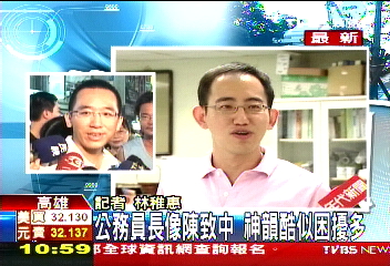 中新網(wǎng)7月26日電 據(jù)臺(tái)灣TVBS電視臺(tái)報(bào)道,陳致中卷入召妓疑云,也讓另外一個(gè)人有點(diǎn)困擾,那就是高雄市政府社會(huì)局的課員張福仁;跟陳致中同年齡,身高比陳致中高一點(diǎn),兩個(gè)人乍看之下還真的有點(diǎn)像,走在路上,偶爾會(huì)被人說(shuō)長(zhǎng)的像,雖然不反感,但神似陳致中,在這敏感時(shí)期還真是有點(diǎn)尷尬。
