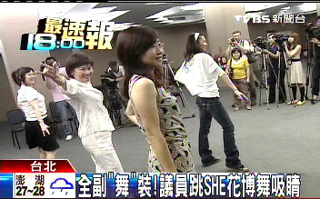 當(dāng)天下午,臺北市女議員脫下厚重套裝,換上輕便服,綁起馬尾,在臺北市議會勤練舞步。她們平日問政很犀利,跳起舞來也很認真。