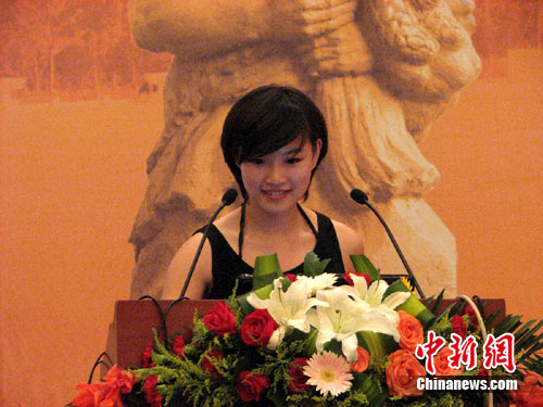 中新網(wǎng)隨州8月8日電(李映民 李純)第二屆海峽兩岸炎帝神農(nóng)文化論壇今天在湖北隨州市舉行,年僅二十二歲、來自臺(tái)灣的美女學(xué)者宋佳穎現(xiàn)身論壇,發(fā)表《臺(tái)灣民俗藝陣創(chuàng)新發(fā)展之研究》演講,成為全場(chǎng)的亮點(diǎn)。