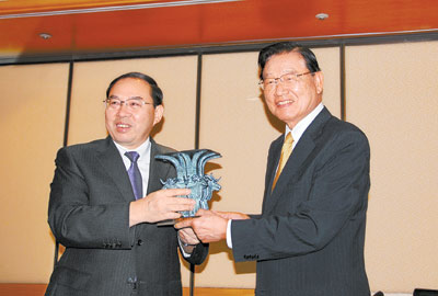 8日中午,海基會(huì)董事長(zhǎng)江丙坤在臺(tái)北會(huì)見了率團(tuán)正在參加“2010年臺(tái)灣湖南周”活動(dòng)的中共湖南省委副書記梅克保一行。