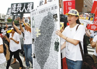 中新網(wǎng)8月12日電 “日本政府,道歉賠償!”日本首相菅直人前天向韓國道歉“曾經(jīng)殖民支配”,臺灣婦女救援基金會、臺灣戰(zhàn)俘營紀(jì)念協(xié)會等民間團體,11日赴“日本交流協(xié)會”前抗議并要求完成“歷史記憶拼圖”,不過交流協(xié)會代表僅接下抗議信,不愿完成拼圖。