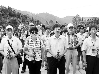 71年后的2010年8月17日,參加“情系八桂——兩岸文化聯(lián)誼行”活動(dòng)的兩岸文化、教育界人士,手持黃菊花走近昆侖關(guān)戰(zhàn)役舊址。一向健談活躍的臺(tái)灣沈春池文教基金會(huì)秘書長(zhǎng)陳春霖先生此時(shí)反復(fù)自語(yǔ)的只有4個(gè)字:肅然起敬。通往陣亡將士墓的臺(tái)階高達(dá)331階,但臺(tái)灣交流團(tuán)中六七十歲的老先生們都步行到墓前,70多歲的臺(tái)前“陸委會(huì)”主委張京育先生說(shuō):“家父也是抗戰(zhàn)烽火中的一名中國(guó)軍人,我這是第二次到廣西,第一次就是抗戰(zhàn)時(shí)隨父母來(lái)的。我們的腳下是前輩先烈為國(guó)捐軀的土地,他們永遠(yuǎn)是我們中華民族之光!
