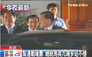 等到要離開時,他只能挨著連戰(zhàn),肩并肩的走,看他臉紅紅走不穩(wěn),似乎只剩下這一抹微笑,在說“我沒醉、沒醉啦”。