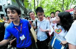 昨日北大五四路上迎來了一群新鮮的面孔,而李戡絕對是其中的“超級明星”。早上8點,兩岸三地的記者就在經(jīng)濟學(xué)院報名處“蹲點”。10點左右,身材清瘦、穿著白底黑條紋襯衫的李戡終于現(xiàn)身,面對媒體的圍追堵截,他應(yīng)對大方得體,承認上北大是受父親的影響。前來送行的母親則希望媒體的關(guān)注只限于近幾日,開學(xué)后能讓孩子平靜安心地學(xué)習(xí)。