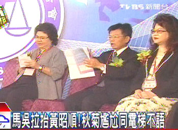 中新網(wǎng)9月5日電 據(jù)臺(tái)灣TVBS電視臺(tái)報(bào)道,大高雄市長(zhǎng)選舉,綠營(yíng)陳菊、楊秋興爆發(fā)內(nèi)訌,2人連坐同一部電梯,也絲毫沒(méi)有互動(dòng),相敬如冰。