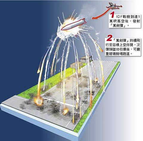 林郁方發(fā)布新聞稿表示,“萬劍”系統(tǒng)內(nèi)裝有上百枚次彈頭,具遠(yuǎn)距遙攻能力,除可用于破壞、癱瘓機(jī)場跑道外,對部隊集結(jié)區(qū)、港口裝卸區(qū)、飛彈及雷達(dá)陣地等,也有極大殺傷力。
