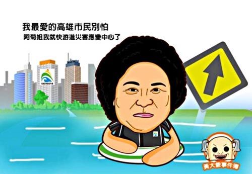 文章說,雖然,目前還不能證實(shí)大高雄的排水系統(tǒng)、雨水下水道工程有無疏失或弊端,但“凡那比”臺風(fēng)造成大高雄嚴(yán)重淹水是事實(shí),因此,陳菊已宣布暫停全部的競選活動,徹夜未眠坐鎮(zhèn)指揮救災(zāi),除了把“救災(zāi)重建視為第一要務(wù)”,陳菊似乎也正在搶救自己恐怕泡湯的選情!