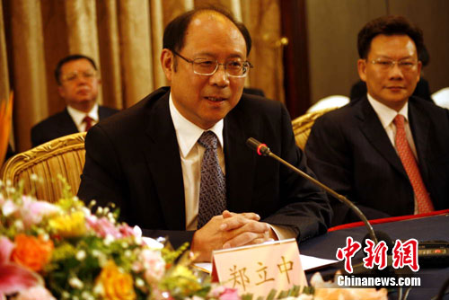 鄭立中在演講中首先回顧了近3年來兩岸關(guān)系發(fā)展的歷程。鄭立中指出,2008年,在兩岸同胞的共同努力下,兩岸關(guān)系出現(xiàn)了歷史性轉(zhuǎn)折,步入了以“和平發(fā)展”為主題的歷史新階段。秉承著“建立互信、擱置爭議、求同存異、共創(chuàng)雙贏”的精神,兩岸雙方開始建立并不斷增進了政治互信,恢復了“兩會”制度化、事務(wù)性的協(xié)商,實現(xiàn)了兩岸全面、直接、雙向“三通”,兩岸大交流、大合作、大發(fā)展的局面初步形成并蓬勃發(fā)展。