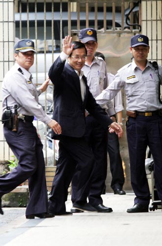 陳水扁因扁家四大案被控貪污、洗錢,6月11日二審被判刑20年。全案上訴“最高法院”后,原高院承審合議庭受“最高法院”囑托開移審?fù)ィ?月裁定羈押扁3個月。在10月18日羈押期滿前,合議庭再次開庭,以決定是否再延押2個月。