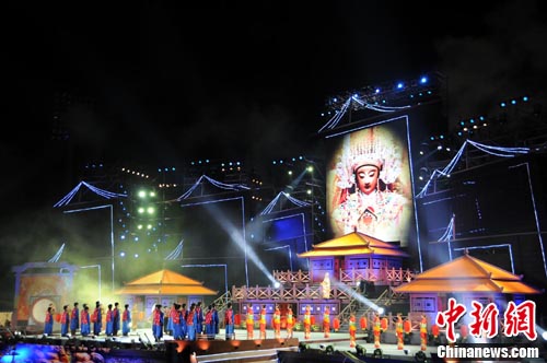 中新網(wǎng)臺(tái)灣彰化10月3日電 閩臺(tái)兩地聯(lián)合主辦的《媽祖之光•福航彰化》大型電視晚會(huì),2日晚在臺(tái)灣彰化縣體育場(chǎng)盛大開(kāi)場(chǎng)。