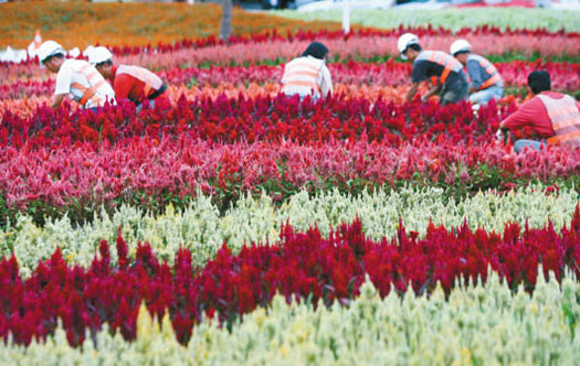 中新網(wǎng)10月9日電 據(jù)臺(tái)灣《聯(lián)合報(bào)》報(bào)道,今天是臺(tái)北花博會(huì)開放測試第一天,圓山公園展區(qū)最大賣點(diǎn)之一正是面積超過七公頃的花海。超過625萬株花卉“一波未平一波又起”分布展區(qū)各處,不論是花卉種類、栽種密集度及面積都稱霸花博四大展區(qū),其中地景花海及爭艷館的“七道彩虹”最值得一看。