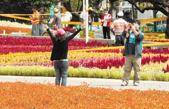 中新網(wǎng)10月9日電 據(jù)臺灣《聯(lián)合晚報》報道,臺北花博會今天起展開4階段開園測試,今天上午首先開放5000名測試志工進(jìn)入圓山公園區(qū)。圓山展區(qū)種植超過625萬株花卉,放眼望去片片花海,其中占地近一公頃的“地景花!保陀薪60萬株花,令首次入園的志工驚艷不已。