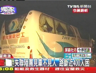 報(bào)道說(shuō),游覽車玻璃上還貼著歡迎貴賓的簡(jiǎn)體字紙條,但車上的司機(jī)和旅客卻不知去向。工程人員表示:“只有車,受困在坍方的地方!庇浾邌枺骸叭擞性谏厦鎲?”工程人員回答:“我不曉得,我沒有上去耶!