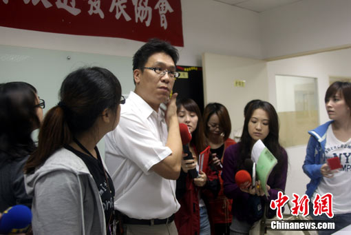記者22日晨來到位于臺北市萬華區(qū)的承擔此次游線的創(chuàng)意旅行社。據(jù)證實,自昨天下午起,就一直無法與該團隊(包括司機、導游和領隊)的任何一個人取得聯(lián)系。圖為該旅行社董事長、臺北市旅行商業(yè)同業(yè)公會理事李奇岳向媒體介紹相關情況。
