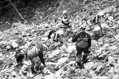 他們突破幾處坍方路段后,向前推進(jìn)了一個小時路程,才碰到受困人員。這些大陸游客和民眾已受困半天,多半饑寒交迫,官兵隨即卸下口糧給他們充饑,之后繼續(xù)向前尋找。