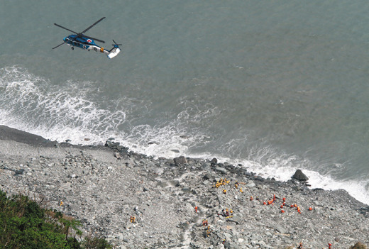 中新網(wǎng)10月26日電 據(jù)臺灣《聯(lián)合晚報》報道,10月25日,在臺灣蘇花公路上尋找失蹤大陸游客的搜救工作已進入第四天,在頭頂還有土石不斷崩落的險境里,搜救人員一步步確認。不過,最為人所關(guān)切的創(chuàng)意旅行團的游覽車,陸?账阉鞑筷犎晕从兴@。