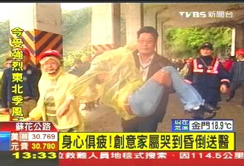 據(jù)臺(tái)灣TVBS電視臺(tái)報(bào)道,蘇花公路搜救行動(dòng)已進(jìn)入第7天,20名失聯(lián)大陸游客的任何消息都牽動(dòng)著他們家屬的心。焦急等待的心情加上惡劣氣候,使得一名創(chuàng)意旅行社失聯(lián)大陸游客家屬在今(27)日中午哭到昏倒,送醫(yī)救治。