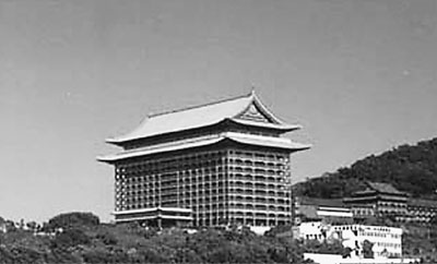 上個世紀(jì)50年代,臺北還沒有一家五星級飯店,蔣介石感到接待外賓尤其是外國政要很不方便,于是就想蓋一座“國賓館”。那么,飯店蓋在哪里好呢?宋美齡認(rèn)為位于基隆河濱、圓山山腰的臺灣飯店就很好。因?yàn)閭髡f這是塊風(fēng)水寶地,當(dāng)年日本人就看中這里是所謂的“龍尾穴”,建起了神社。臺灣光復(fù)后,在神社的廢墟上蓋起了臺灣飯店,由本地的旅行社經(jīng)營。雖然臺灣飯店只有36間客房、1間餐廳,建筑老舊,設(shè)備簡陋,但環(huán)境清幽,視野開闊,宋美齡很喜歡在這里接待外賓。地址選好了,那么選擇什么建筑式樣呢?幾經(jīng)考慮,蔣介石最后選擇了中國宮殿式房舍和庭院,意圖憑借其莊重宏偉的外觀、典雅精致的陳設(shè),向外賓宣揚(yáng)中國的傳統(tǒng)文化。臺灣著名的建筑設(shè)計(jì)師楊卓成先生為此繪制了12張風(fēng)格迥異的設(shè)計(jì)圖,蔣介石選了其中一張。可以說,圓山飯店從它建成的第一天起,就注定要成為人們關(guān)注的焦點(diǎn)。