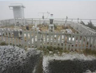 海拔3850米玉山氣象站,已經變成一片銀白世界,氣象部門說下雪的時間大約是在上午11點多左右,玉山氣象站氣溫才剛破零度,就飄下今冬第一場瑞雪,不過雪只短短的飄了10分鐘就停了,地面累積了1公分積雪厚度。