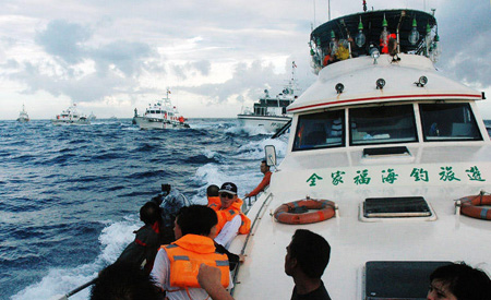 馬英九當(dāng)局的強(qiáng)硬態(tài)度,讓保釣人士格外興奮。黃錫麟等人再次出海保釣,也沒有遭遇任何阻攔。臺灣保釣行動聯(lián)盟12名成員及30名隨行記者,登上“全家!碧柡a灤,前往釣魚島宣示“主權(quán)”。一路上還有臺灣“海巡署”的軍艦保護(hù)。