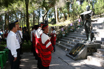 中新網(wǎng)10月26日電 霧社起義事件迄今已七十七年,為緬懷“原住民”抗日英雄莫那魯?shù)溃_(tái)灣南投縣多個(gè)單位今天在霧社抗日紀(jì)念碑前舉行祭典,一同向烈士英靈致敬。