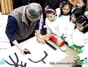抹布當(dāng)毛筆 臺(tái)老者另類書(shū)法好神奇(圖)