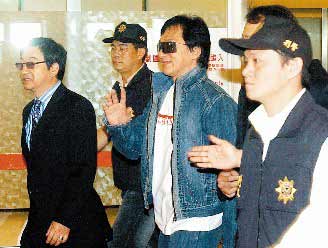 成龍一跨進(jìn)入境大廳,就被抗議群眾大喊“成龍滾蛋”,不過也隨即有支持群眾高呼“歡迎成龍”,兩邊彷佛較勁一般。而帶著大墨鏡的成龍,在保全與警方重重圍住保護(hù)下,始終面帶笑容,超過十次提醒采訪記者要小心機(jī)器注意安全,對于媒體詢問心情,成龍表示到臺灣很開心,已經(jīng)跟朋友約好要碰面,接著就上車呼嘯而去。