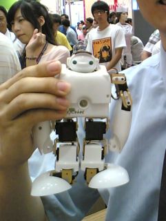 今年機器人展上,服務(wù)型機器人不斷推陳出新。全世界最小商品化的人形機器人BeRobot首次亮相,高度只有15厘米,可以無線遙控或是聲控。BeRobot有65000多種動作,跳舞、伏地挺身甚至打太極拳都難不倒,還可以變身為電子寵物。