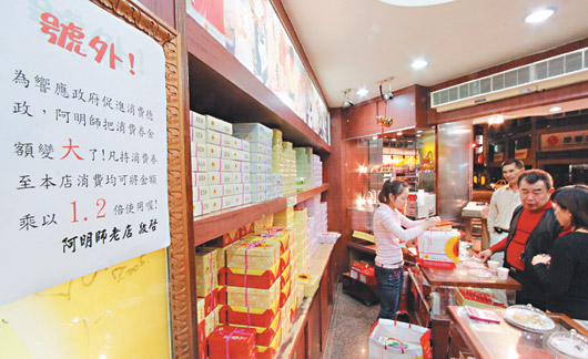 中新網(wǎng)11月19日電 據(jù)臺灣《聯(lián)合報》報道,為刺激消費,臺當(dāng)局將發(fā)放每人三千六百元(新臺幣,下同)的消費券,迎接高達八百五十億元的消費券商機,包括零售、超商、量販、餐飲等業(yè)者樂翻了,都把消費券視為今年和明年的營銷重點,紛紛摩拳擦掌規(guī)劃各種促銷方案。
