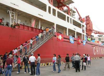 “雪龍?zhí)枴迸潘?萬噸,船身長167公尺,可全天候進行測繪與科學研究,還可搭載兩架直升機。雪龍?zhí)柾?扛咝鄹燮陂g,4月2日起開放臺灣民眾參觀,但必須事先登記名單,不能現場報名。(周先)
