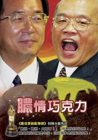 臺(tái)“全民麻辣鍋”網(wǎng)站最近開(kāi)設(shè)了“2005至2007臺(tái)灣奧卡斯獎(jiǎng)——民進(jìn)黨執(zhí)政之荒謬劇場(chǎng)”票選活動(dòng),以反諷、笑中帶淚的方式為民進(jìn)黨“執(zhí)政”頒獎(jiǎng)。民進(jìn)黨4大天王及扁妻皆成為臺(tái)灣民眾惡搞對(duì)象,通通上榜,并奪得各項(xiàng)大獎(jiǎng)。