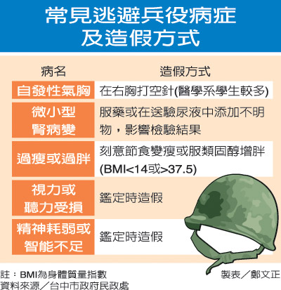 一位曾參與役男體檢的醫(yī)師說(shuō),體檢過(guò)程很?chē)?yán)格,就算檢查出蛋白尿也不能確定免役,醫(yī)師會(huì)要求役男當(dāng)場(chǎng)解尿復(fù)驗(yàn),接著還要抽血檢驗(yàn),如果還有問(wèn)題,最后還得以直徑0.1公分的針頭穿刺腎臟,取得切片組織,在電子顯微鏡下確認(rèn)腎病變,才能取得免役資格;不少“假仙”的役男一聽(tīng)到要切片,打退堂鼓的居多。